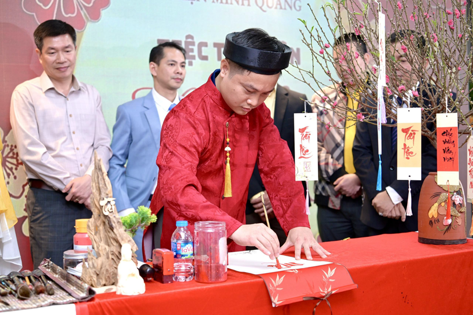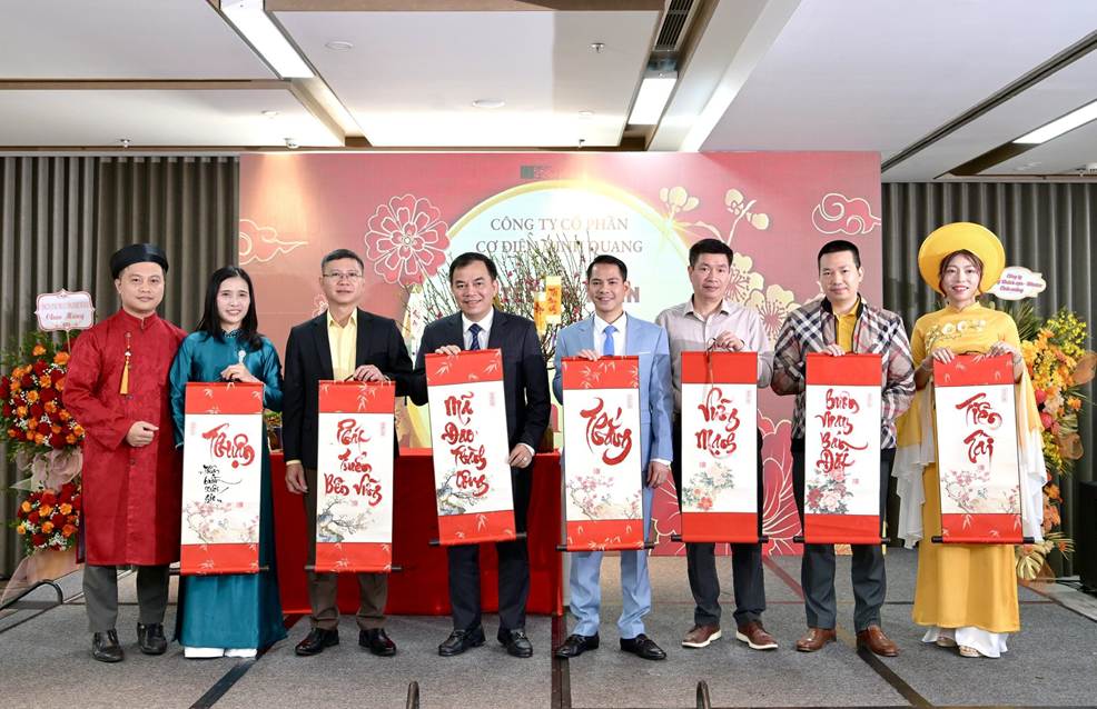 Điểm nhấn đặc biệt của chương trình là hình ảnh Thầy đồ xin chữ đầu năm – một nét đẹp văn hóa Tết cổ truyền được tái hiện trang trọng và ý nghĩa. Đại diện Ban Lãnh đạo cùng các Trưởng phòng lần lượt xin những chữ mang hàm ý sâu sắc như “Thuận”, “Thắng”, “Vững vàng”, “Thành công”… Những nét bút uyển chuyển trên giấy đỏ không chỉ là lời chúc cá nhân mà còn là kim chỉ nam tinh thần cho cả tập thể Minh Quang trong hành trình phía trước.
